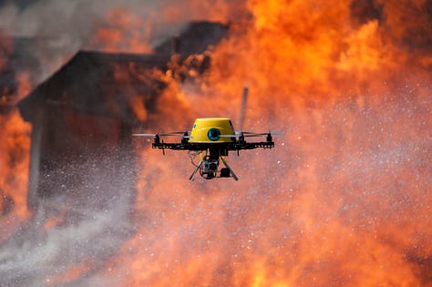 Με πρόφαση την έγκαιρη κατάσβεση των πυρκαγιών το υπουργείο «Κλιματικής Κρίσης» αξιοποιεί τα drones, που «οργώνουν» τις δασικές εκτάσεις για να εντοπίσουν και την πιο μικρή εστία καπνού, στέλνοντας την επίμαχη εικόνα από το τόπο της φωτιάς στο κέντρο επιχειρήσεων της Πολιτικής Προστασίας, ώστε οι αφελείς πολίτες να πεισθούν για τα οφέλη και την χρησιμότητα της τεχνητής νοημοσύνης στην αντιμετώπιση έκτακτων συνθηκών.